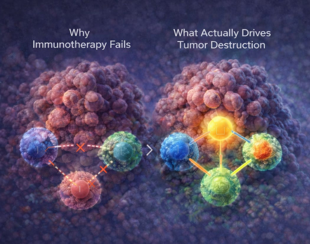 Most cancer immunotherapies fail because the immune system is never properly engaged. In many patients, the right immune cells are present — they just aren’t interacting in the way tumor destruction actually requires.